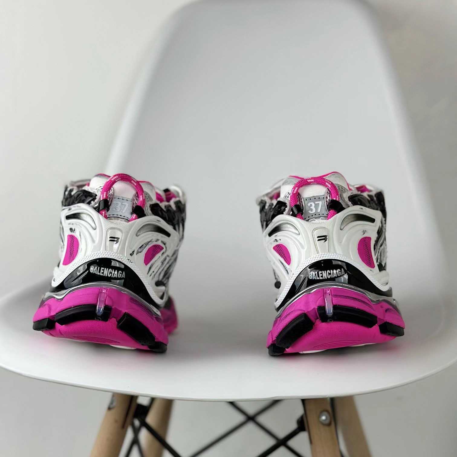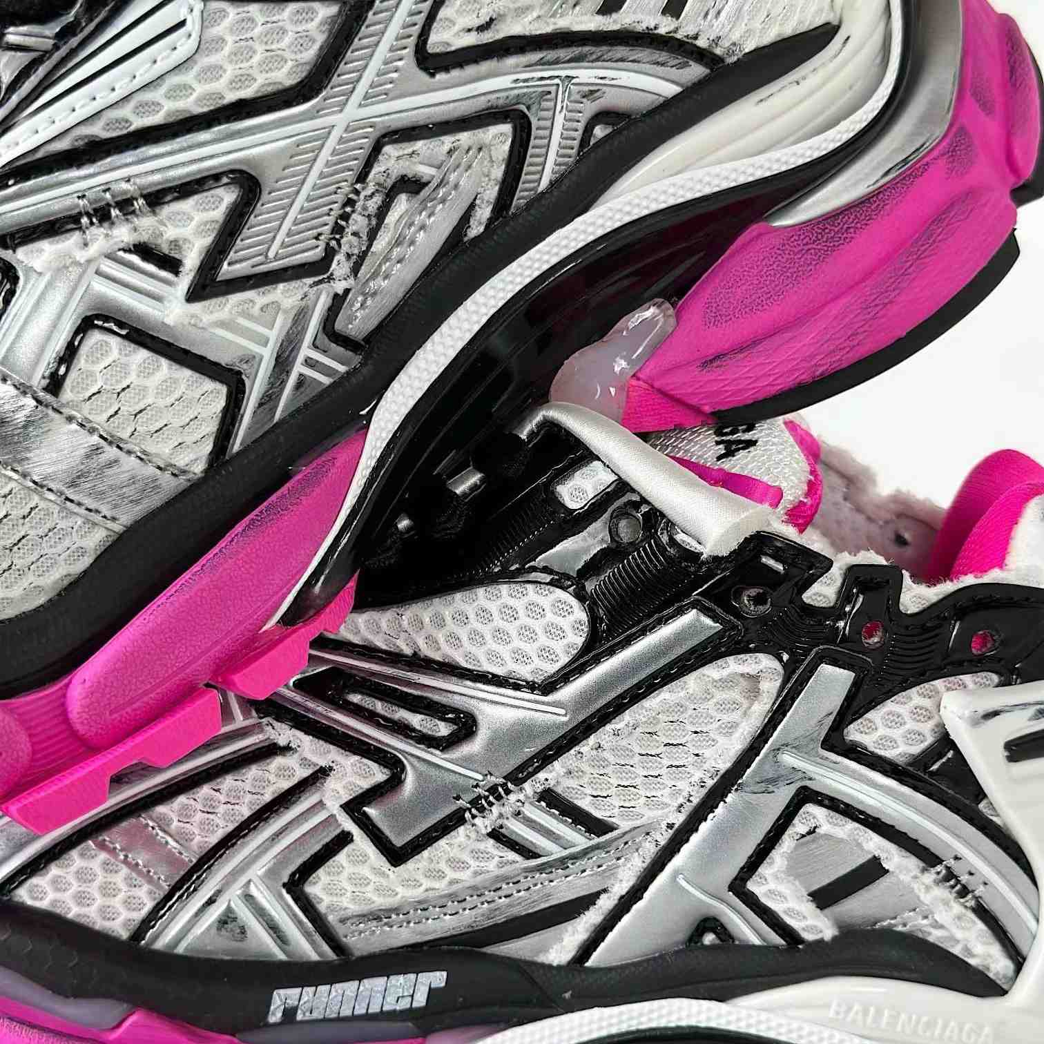 Runner Sneaker in silver, black and neon pink mesh and nylon