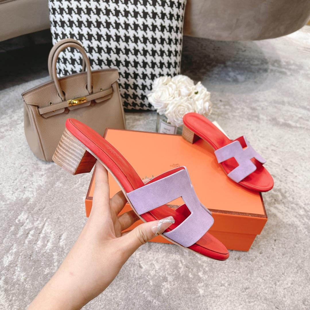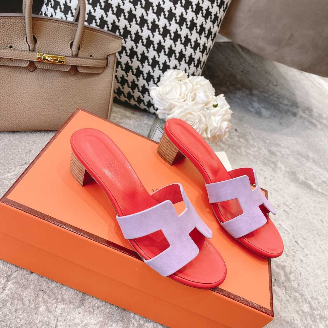 Sandal in suede goatskin with straight cut edges and iconic "H" cut-out.