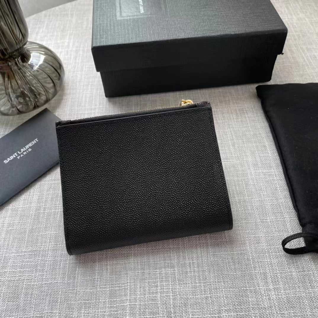 Saint Laurent Uptown Compact Wallet In Grain De Poudre Embossed Leather(12-10-3cm)